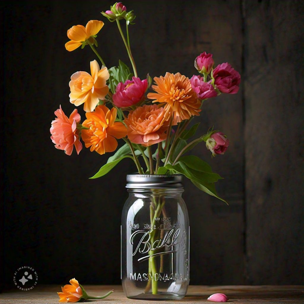 Fill a mason jar with fresh flowers, branches, or greens for a rustic and elegant vase.