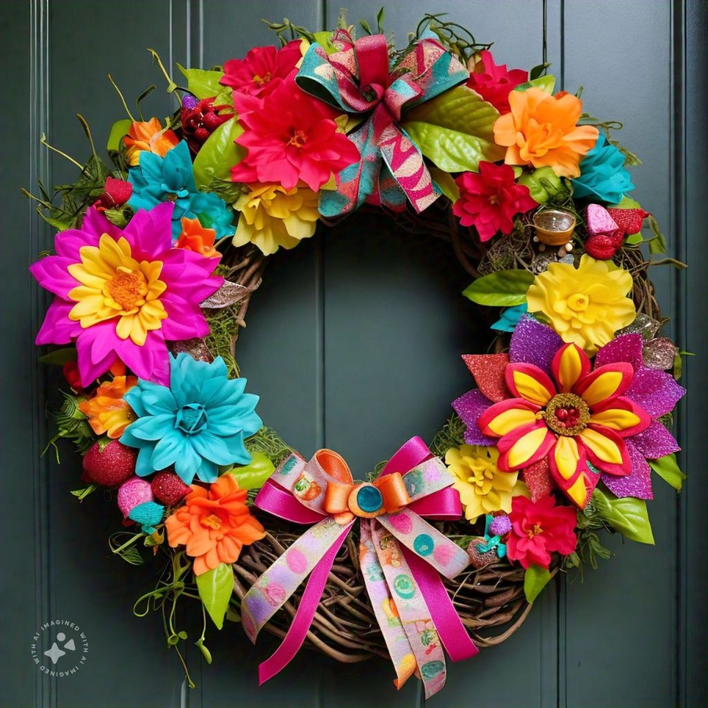 Craft a spring-themed wreath using flowers, ribbons, or natural materials like twigs and pinecones.