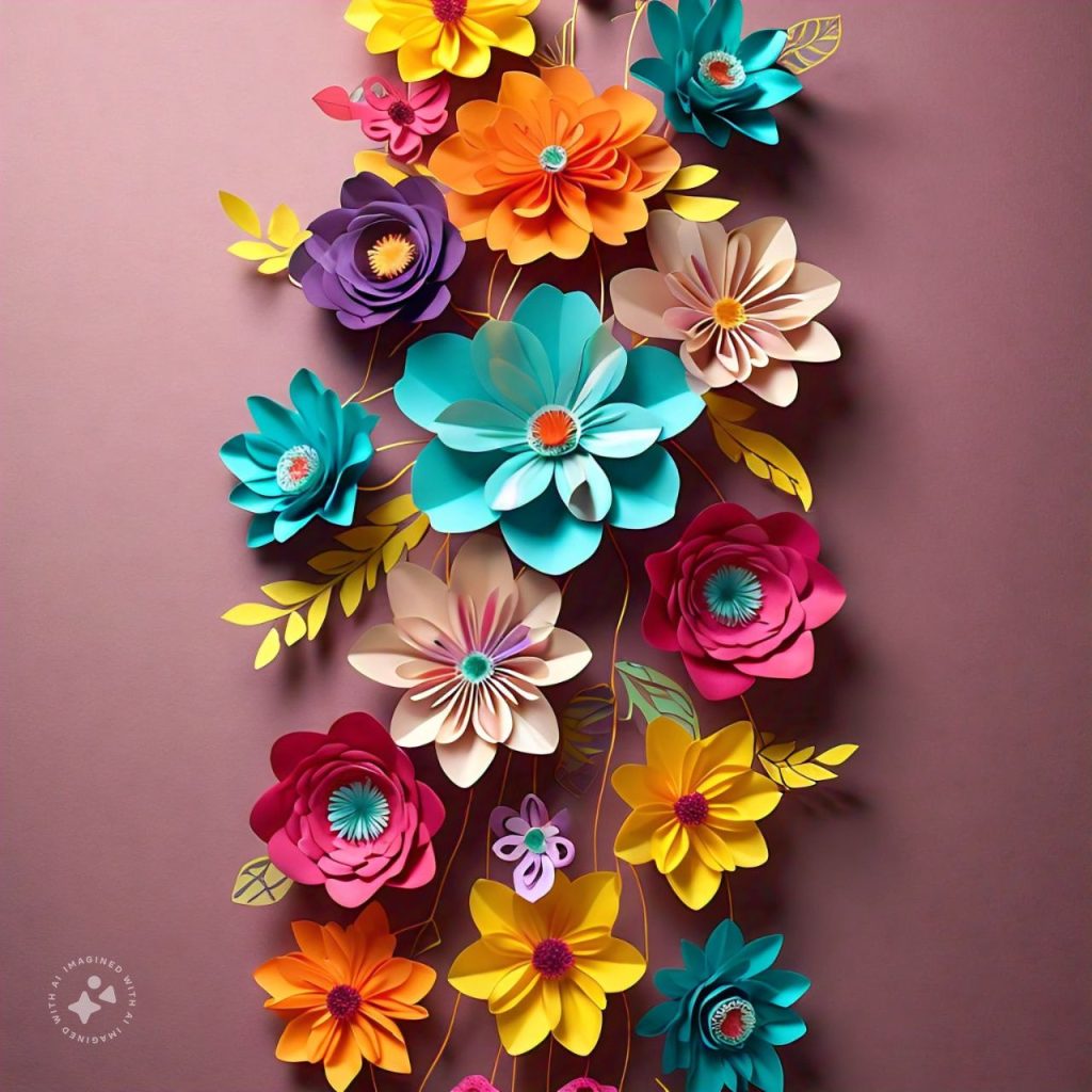 Create a colorful garland using paper flowers in various shapes and sizes.