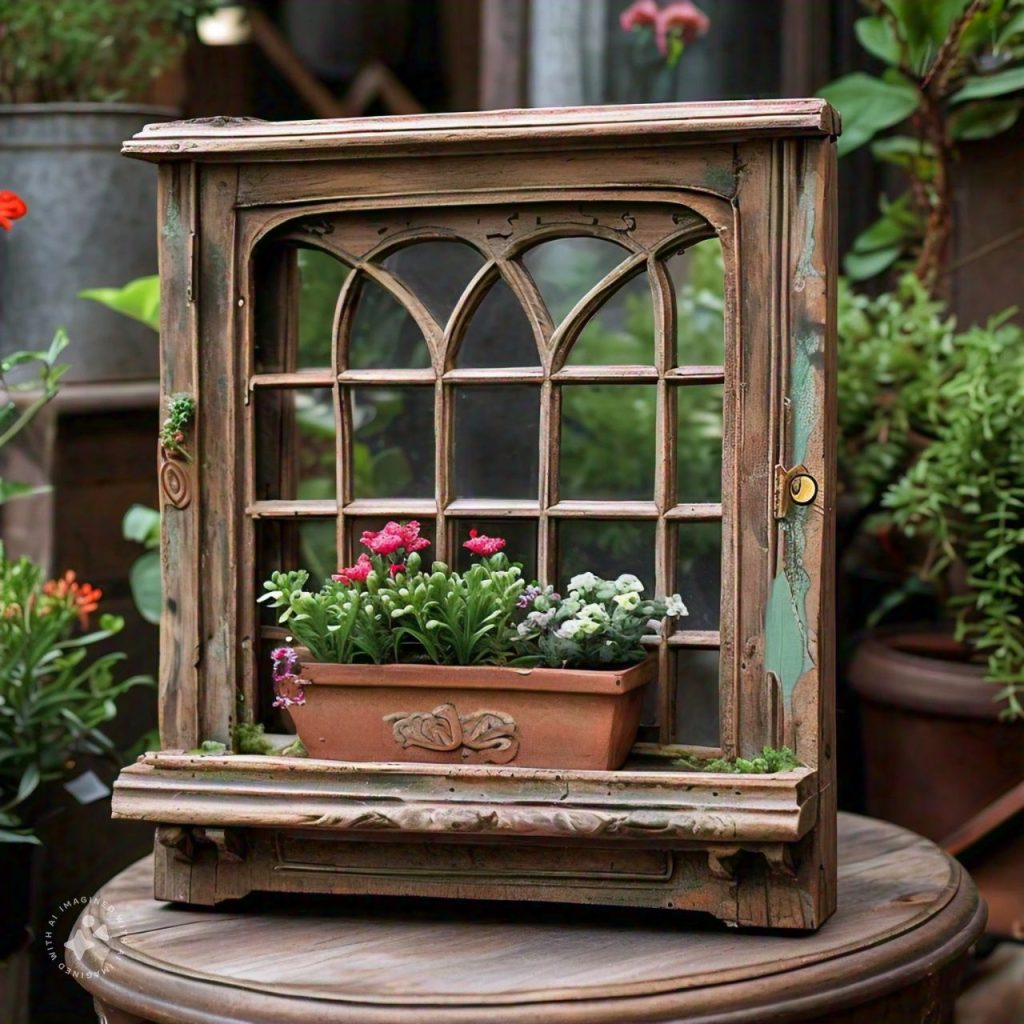 Hang an old window on a wall or door and fill it with plants or flowers for a unique planter.
